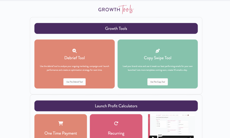 Access to the Growth Tools Suite: from calculators to copy creators to instant debriefs.